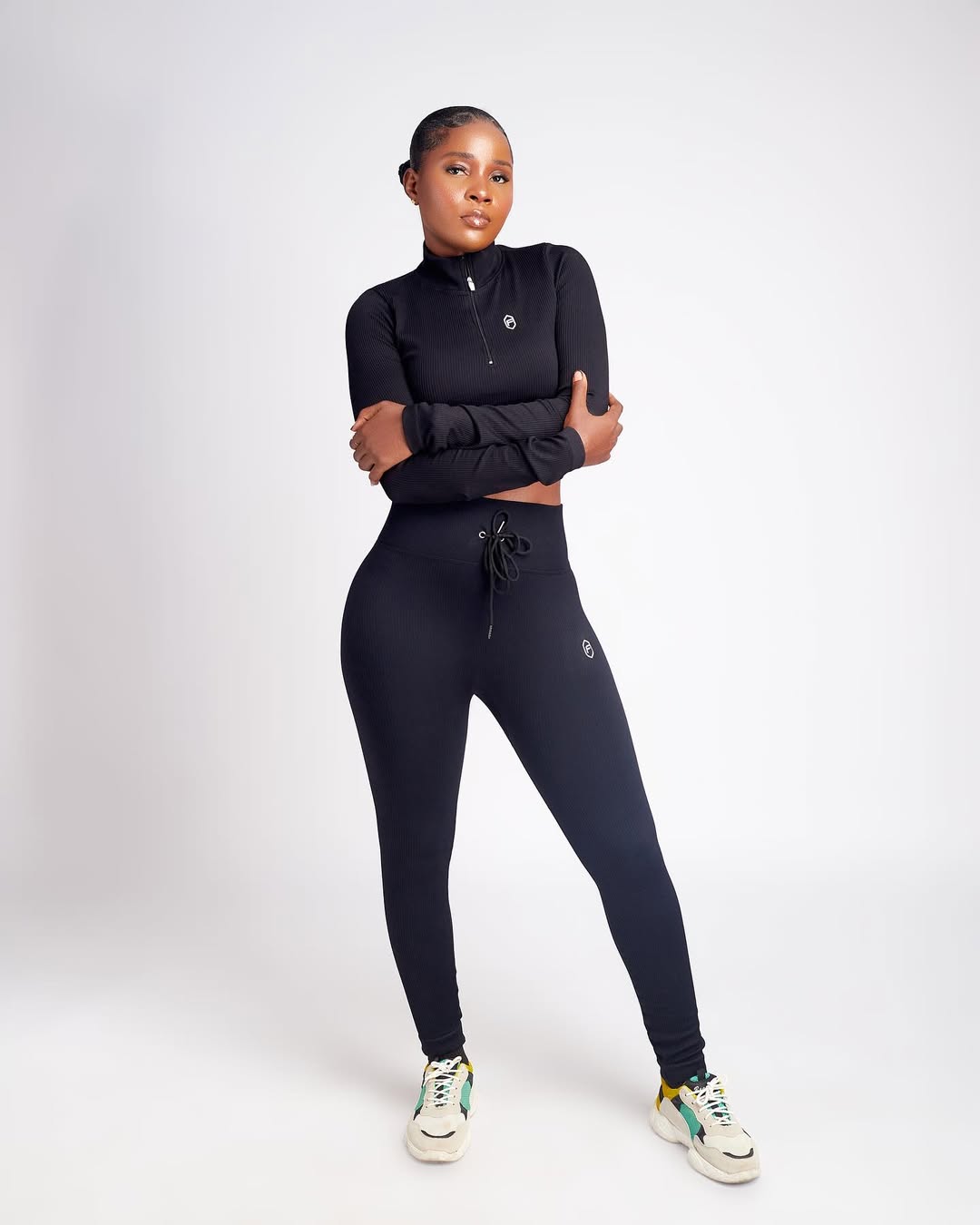 Trendy gym set designed to enhance curves and movement.